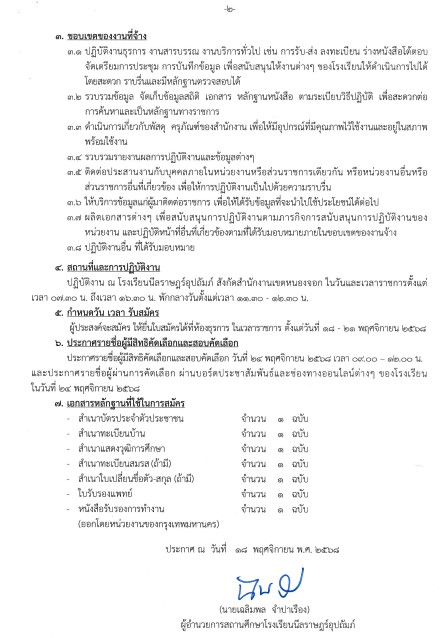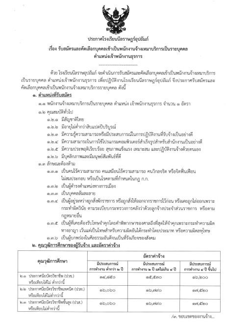 เป็นรายบุคคล ตำแหน่งเจ้าพนักงานธุรการ เพื่อปฏิบัติงานโรงเรียนนีลราษฎร์อุปถัมภ์ จึงประกาศรับสมัครและคัดเลือกบุคคลเข้าเป็นพนักงานจ้างเหมาบริการรายบุคคล ดังนี้ ตำแหน่งที่รับสมัคร